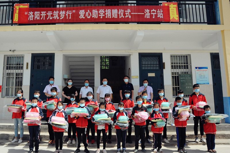 2020年5月27-29日,“洛陽開元筑夢行”愛心捐助活動分別在欒川秋扒鄉(xiāng)中心小學、洛寧故縣中心學校、宜陽蓮莊鎮(zhèn)政府舉行,共資助了61名貧困學生,累計捐款捐物近4萬元;