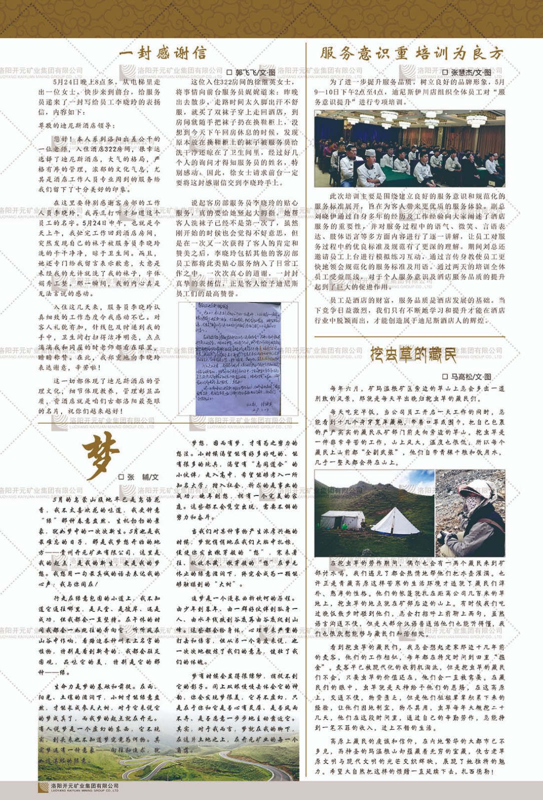 洛陽(yáng)開元礦業(yè)集團(tuán)有限公司簡(jiǎn)介洛陽(yáng)開元礦業(yè)集團(tuán)有限公司,始成立于2006年,位于洛陽(yáng)市開元大道269號(hào)。集團(tuán)旗下共有五余家全資子公司,業(yè)務(wù)涉及有色金屬礦山開發(fā)、礦產(chǎn)品購(gòu)銷與進(jìn)出口貿(mào)易、房地產(chǎn)開發(fā)、文化藝術(shù)、企業(yè)管理與咨詢、資本投資等多個(gè)領(lǐng)域。民建河南省委委員、民建河南省委企業(yè)委副主任、民建洛陽(yáng)市委委員、企業(yè)委主任、洛陽(yáng)民建企業(yè)家協(xié)會(huì)會(huì)長(zhǎng)許明月是公司創(chuàng)始人,現(xiàn)任洛陽(yáng)開元礦業(yè)集團(tuán)有限公司董事長(zhǎng)。在礦業(yè)領(lǐng)域,洛陽(yáng)開元礦業(yè)集團(tuán)擁有多家實(shí)力雄厚的子公司:貴州開元礦業(yè)有限公司探、采礦權(quán)面積共11.33平方公里;興??h銅鑫礦業(yè)有限公司探礦權(quán)面積8.76平方公里,礦山資源潛力巨大;2021年,開元集團(tuán)與盧氏中科礦業(yè)有限公司開展戰(zhàn)略合作。盧氏中科礦業(yè)有限公司專注于有色金屬的浮選、加工和銷售,擁有強(qiáng)大的技術(shù)支撐平臺(tái),是集探、采、選、冶、研為一體的中大型綜合礦業(yè)企業(yè)。目前,盧氏中科王家河1000噸選礦廠已成功投產(chǎn),雙河金礦、柳關(guān)欒盧鉛鋅礦相繼順利開工,樓房銀礦與圪老灣鉛鋅礦的深部探礦重大突破,標(biāo)志著礦山版圖取得重大進(jìn)展,為開元集團(tuán)后續(xù)發(fā)展奠定了堅(jiān)實(shí)基礎(chǔ)。在文化傳媒領(lǐng)域,洛陽(yáng)市明月美術(shù)館通過豐富多樣的藝術(shù)展覽、學(xué)術(shù)研討和公共教育活動(dòng),努力打造一個(gè)集展覽、交流、教育、研究為一體的綜合性藝術(shù)平臺(tái)。此外,在金融投資領(lǐng)域,開元集團(tuán)旗下的北京明峰資本管理有限公司專注于投資具有高增長(zhǎng)潛力的優(yōu)秀企業(yè),特別是高科技、新能源、環(huán)保等新興產(chǎn)業(yè),為客戶提供個(gè)性化的資產(chǎn)配置服務(wù)。在做好企業(yè)經(jīng)營(yíng)的同時(shí),開元集團(tuán)始終不忘企業(yè)的社會(huì)責(zé)任和家國(guó)情懷,以突出的愛心公益事跡,開展了一系列公益慈善活動(dòng):“民建林”公益事業(yè)通過“思源基金”“幫幫公益”線上公益平臺(tái),與眾多愛心人士籌措資金20余萬(wàn)元;資助541名貧困大學(xué)生共計(jì)270余萬(wàn)元,推進(jìn)“數(shù)字助力——河南AI人才培養(yǎng)”;捐款10萬(wàn)元,馳援京津冀、黑龍江洪水地質(zhì)災(zāi)害……公司于2017年底被洛陽(yáng)市慈善總會(huì)評(píng)為“洛陽(yáng)慈善風(fēng)云榜——十大愛心集體”。洛陽(yáng)開元礦業(yè)集團(tuán)有限公司秉承持續(xù)發(fā)展理念,憑借多年來(lái)良好的企業(yè)信譽(yù)與經(jīng)營(yíng)業(yè)績(jī),與全國(guó)多家企業(yè)建立了良好合作關(guān)系,受到社會(huì)各界的一致好評(píng),多次榮獲“納稅標(biāo)兵”“先進(jìn)企業(yè)”“招商引資模范企業(yè)”等榮譽(yù)稱號(hào)?;赝麃?lái)時(shí)路,開元人勠力同心,以“闖”的精神和“創(chuàng)”的勁頭,一路披荊斬棘,踏過千山萬(wàn)水;展望新未來(lái),開元人凝心聚力,不執(zhí)于“舊”,無(wú)畏于“新”,秉承“勇于跨越,追求卓越”的企業(yè)精神,乘著國(guó)家高質(zhì)量發(fā)展新征程的東風(fēng),跨過高山,越過大海,向著集團(tuán)多元化、國(guó)際化的目標(biāo),逐夢(mèng)遠(yuǎn)航,跨越前行!
